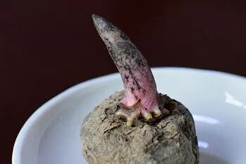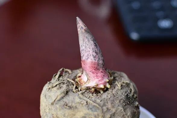 魔芋除了自身是个大块茎,它还有很多根和肉质茎。根当然是吸收养分供魔芋生长的,肉质茎则会分化成新的魔芋种,也就是俗称的“箭头子”,我们把它叫作芋鞭。